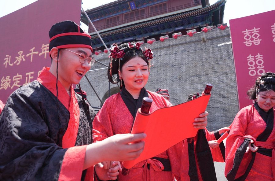 正在省市正定古城举行的集体婚礼上,新中式婚礼红红火火;我连搭配婚礼画面的BGM都想好了,决定当前成婚流程能省则省,穿行于大街冷巷收成一祝愿。